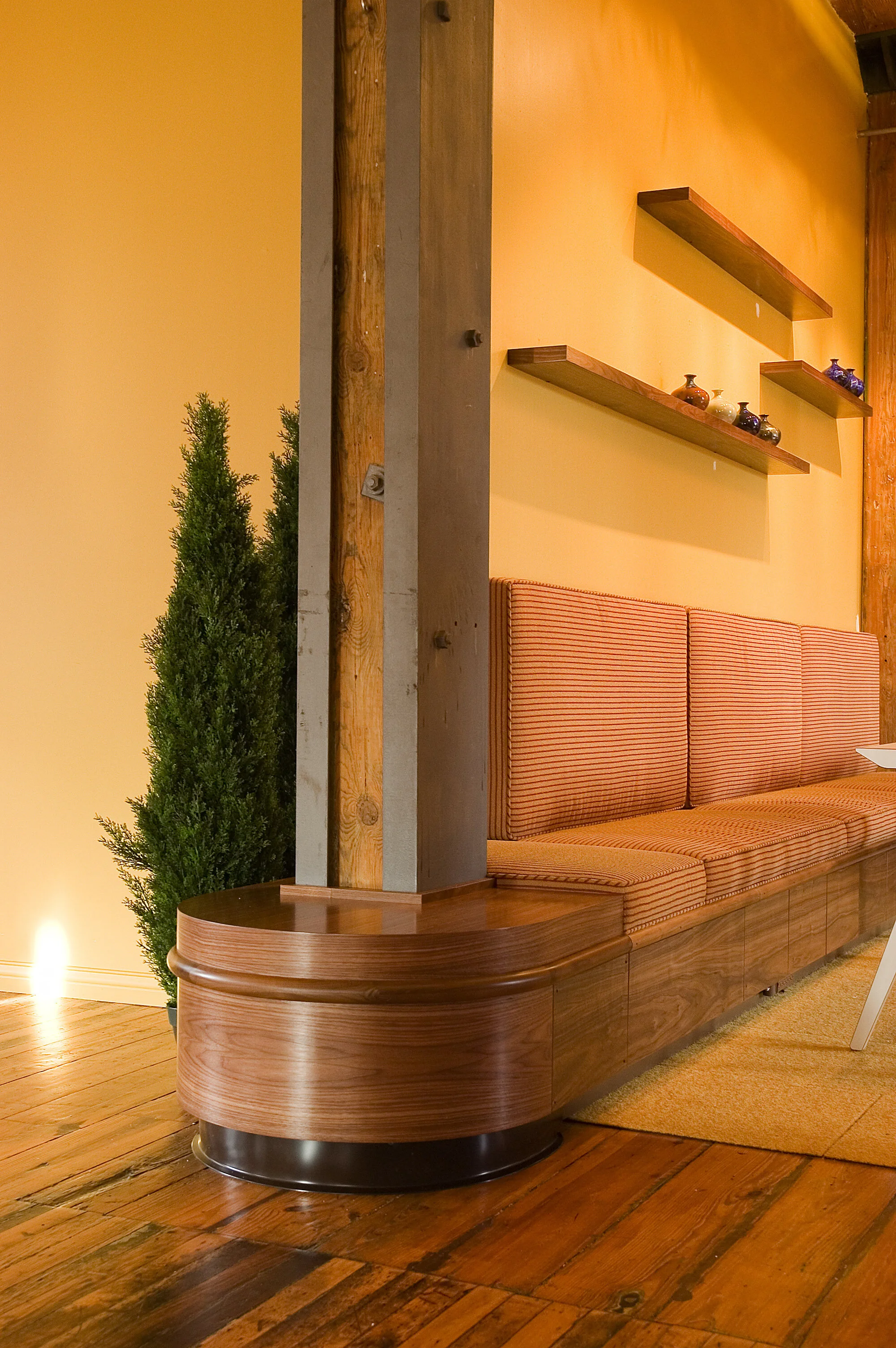 We needed to design a space that was sensitive to the client’s unconventional methods of training and working. The staff needed storage space, dining space, carpeted floor space for exercise, desk quarters, and a closed in, quiet reading space which they defined as a "womb."